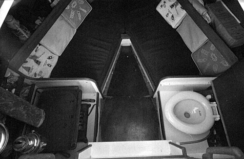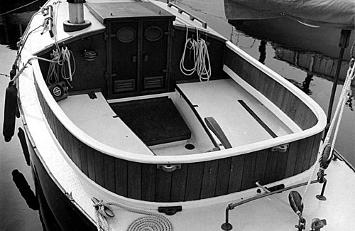 The interior layouts show variations suited to different needs. They range from the very simple to much greater comfort for longer cruising. The shorter cabin has a larger cockpit suited for mainly day sailing with larger groups aboard. The longer cabin has extra length in the cabin and less in the cockpit. If you're cruising with a smaller crew and want more creature comforts, this is a good choice.