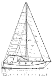 room and greater seagoing ability. The twin keels and centerline skeg and rudder provide three-point