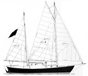 The ketch rig is shared with the 30-footer, as are the keel and general scantling drawings. An aluminum spar version of the
