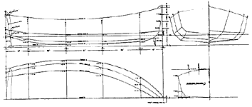 I'd suggest building her of ¼" (6mm) plywood, or 3/16" (4mm) if a really light version was wanted. Scantlings like the